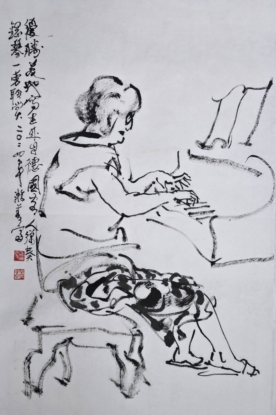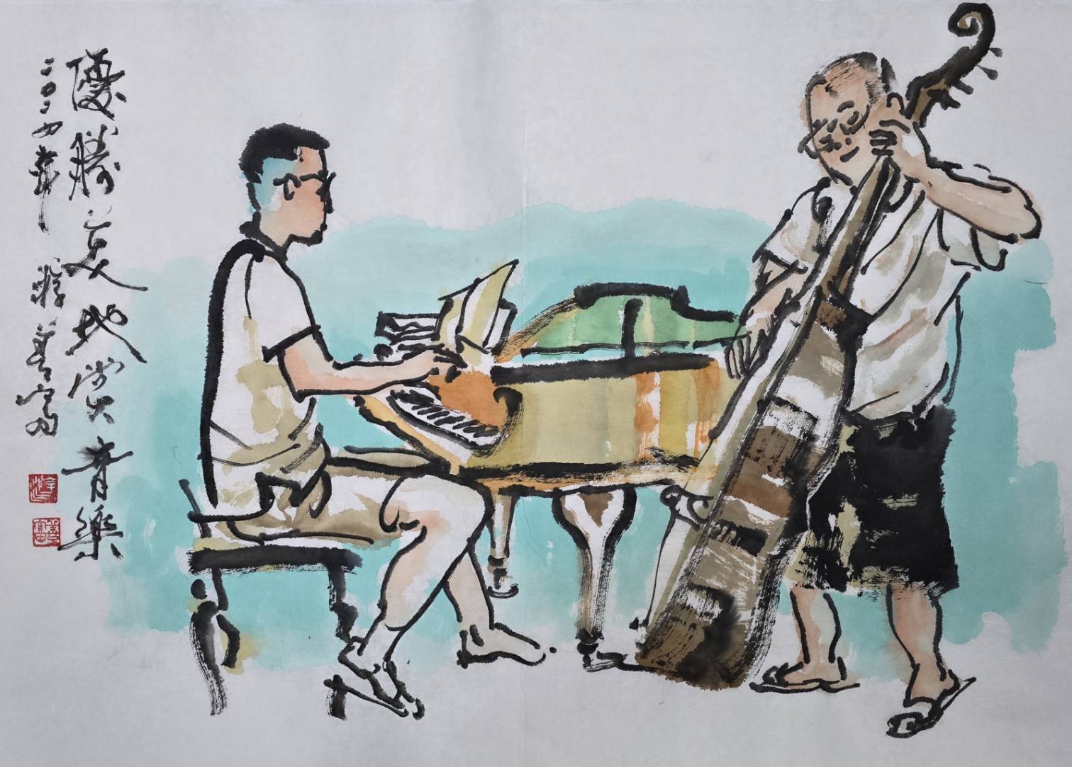 次日早餐後咖啡時間,果然音樂響起,是老闆與客人音樂交流,機不可失,趕緊備畫具寫生之,主人熱烈歡迎,當我是無聲的音樂,一塊熱鬧,哈哈。