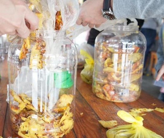 本月市集特別安排「食農教育推廣」活動,邀請鳳梨的故鄉-大樹區休閒農業發展協會謝坤淞理事現場教學「鳳梨清潔酵素」DIY,帶領民眾從削皮開始製作出天然的鳳梨清潔劑,以鳳梨皮為原料,透過自然發酵,活用鳳梨蛋白酶的強效去汙力,不僅能去除油垢、不傷肌膚,也不產生化學殘留。這場教學不只是手作體驗,更是一堂環保課程,讓參與者理解農產品的多元應用與永續價值,實踐從農場到家庭的綠色生活理念。