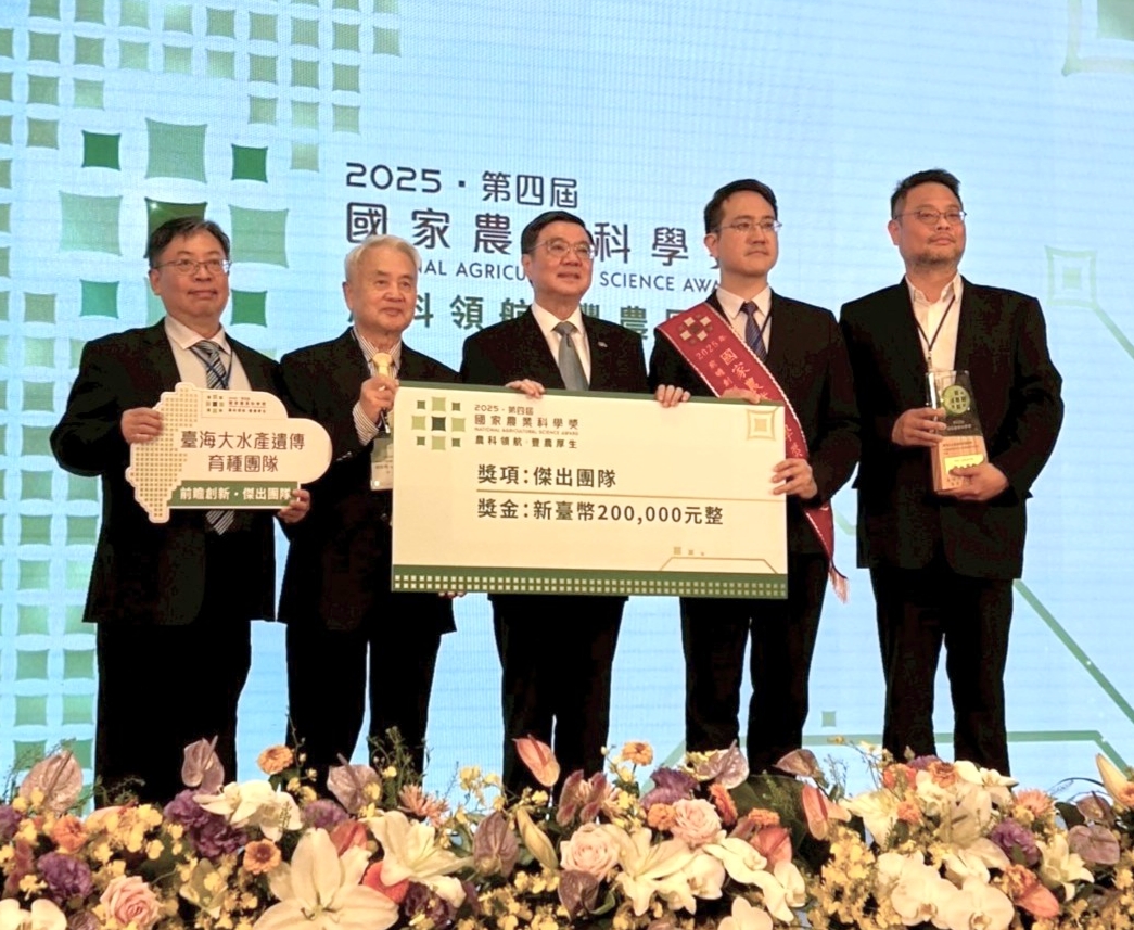 團隊榮獲農業部「2025國家農業科學獎—前瞻創新傑出團隊」,於12月16日由行政院長卓榮泰頒獎,肯定其在水產育種領域之國家級貢獻。