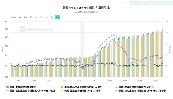 物價指數包含原物料,房租,服務業工資,當然沒有【關稅】這個項目。 但很明顯,2025年 4 月份的關稅,3 個月後引發 PPI 的大幅上漲,這是屬於正常的因果關係。 PPI 大幅上漲,也會引發 3 個月後的 CPI 大幅上漲。 而股市會對這些經濟情況做出反應。