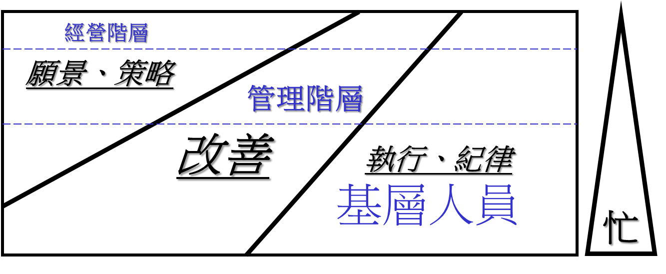 上第一圖要指出的是,最應該忙碌的是基層人員,最需要從容不迫的是經營階層。然而;大部份華漢企業似乎反之!