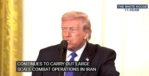 川普總統說伊朗已經沒有海軍(伊朗17艘大型軍艦 全毀), 也已經沒有空軍( 飛機及機場全毀), 而且防空通訊系統全毀。 如果再一次炸死伊朗的領導階層,伊朗可能就沒有領導階層。 ( 按: IRGC 伊朗伊斯蘭革命衛隊Islamic Revolutionary Guard Corps 共有4000人左右,控制全伊朗,負責捍衞革命成果和政權安全,和伊朗正規軍Artesh 並行的「雙軌」軍事力量。 像不像中共政權?)