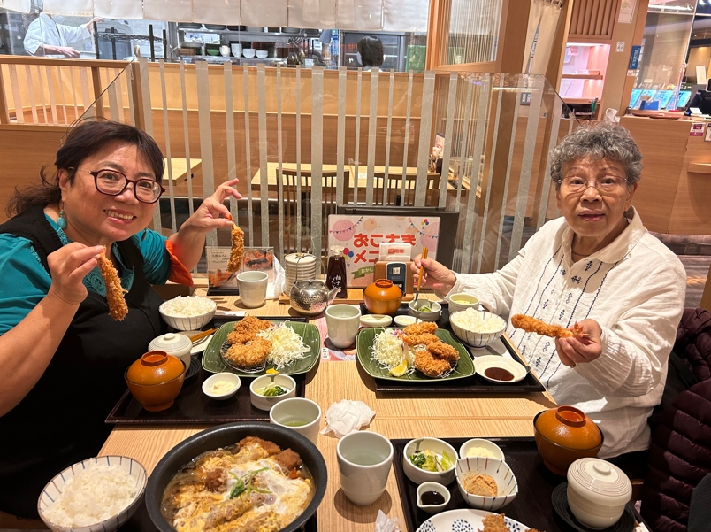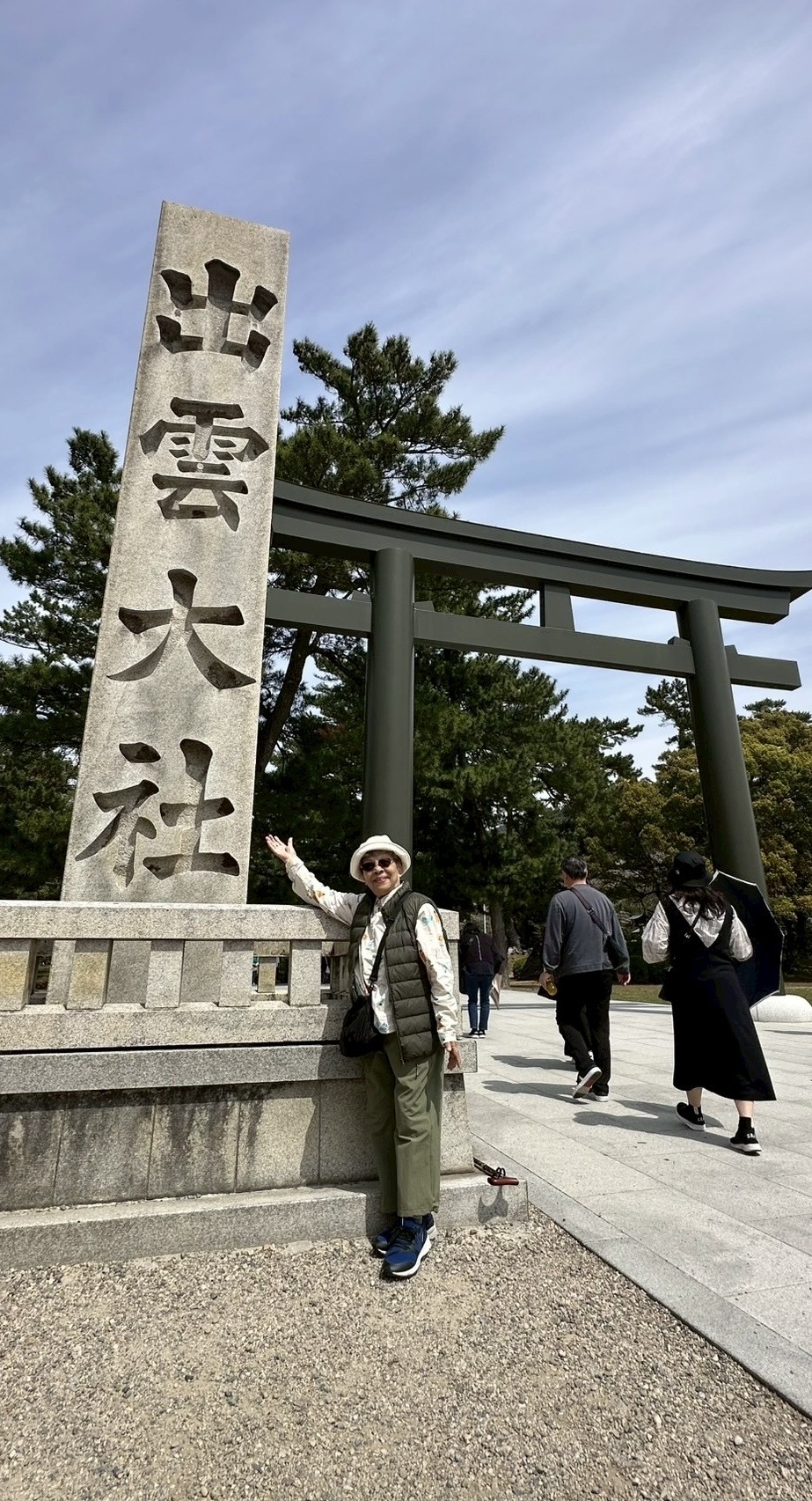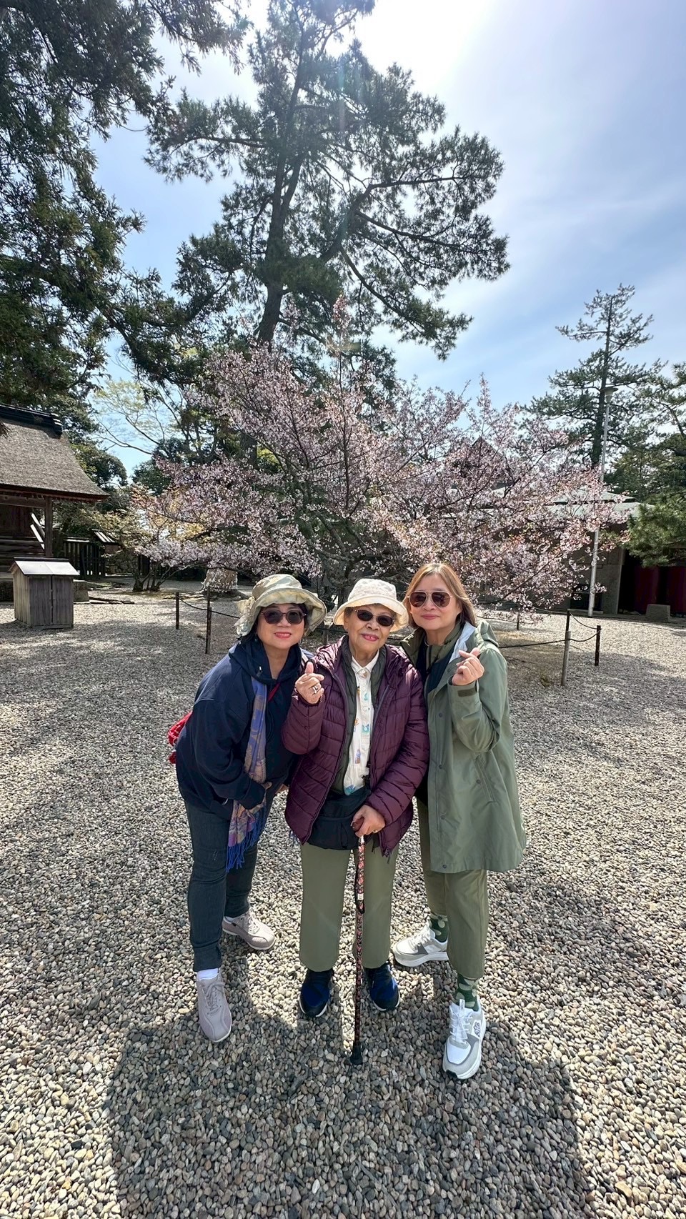 這次的岡山自由行,感謝有妹夫自駕,但多數景點還是需要走路。西元前6百年興建的出雲大社,母親賞景興緻高昂,全程健行。早年台灣家庭重男輕女,家族有說母親肚皮不爭氣,連生四個女兒,如今我們結婚成家,母親有四位女婿「半子」一起孝順啊!