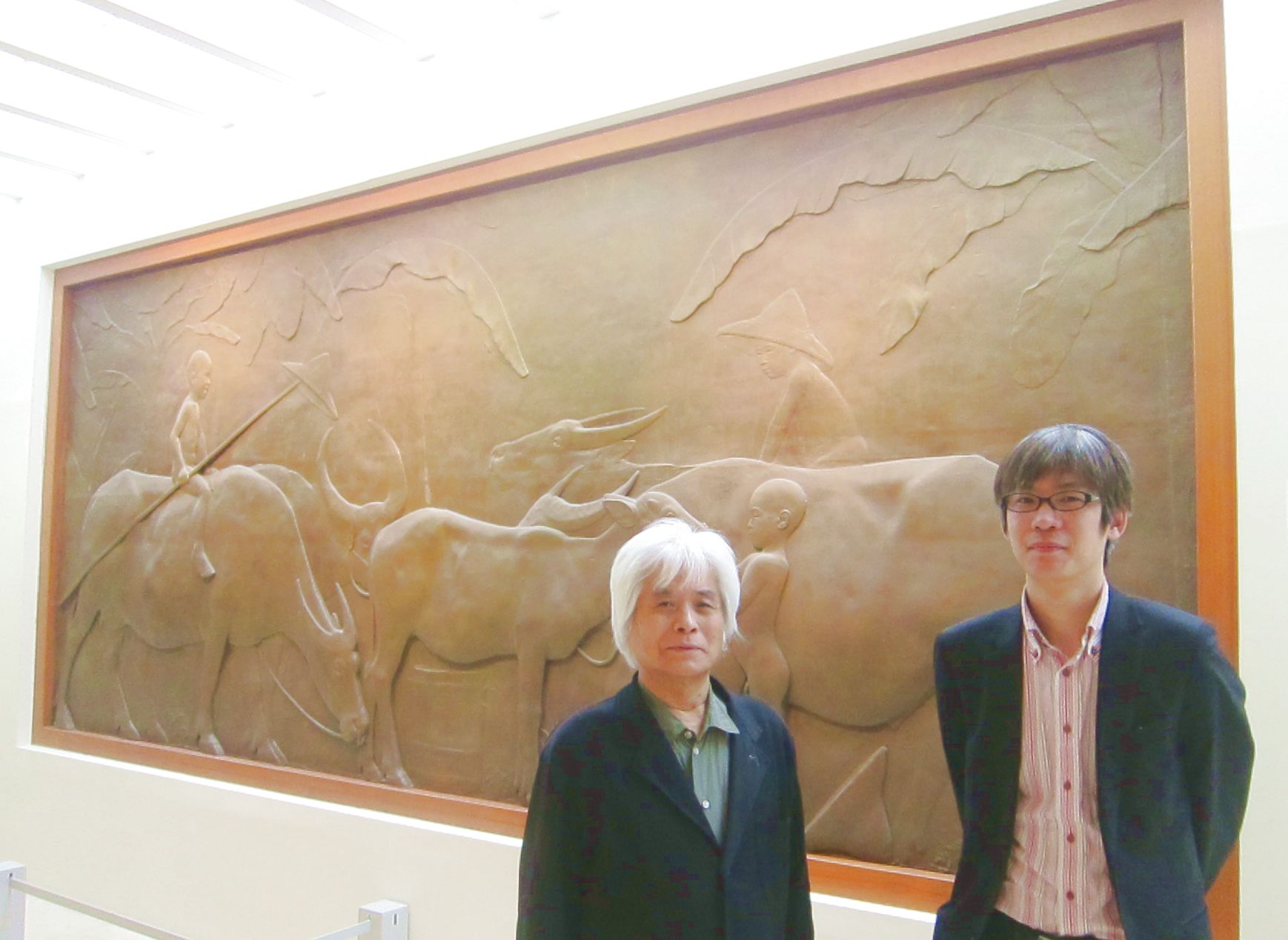 2015.3.13,曾揮毫我《詩寫台灣》之〈八田與一〉詩和〈玉山〉詩的日本東京書道家原田歷鄭來高雄,我就帶他去看有台灣意象的黃土水〈水牛群像〉。