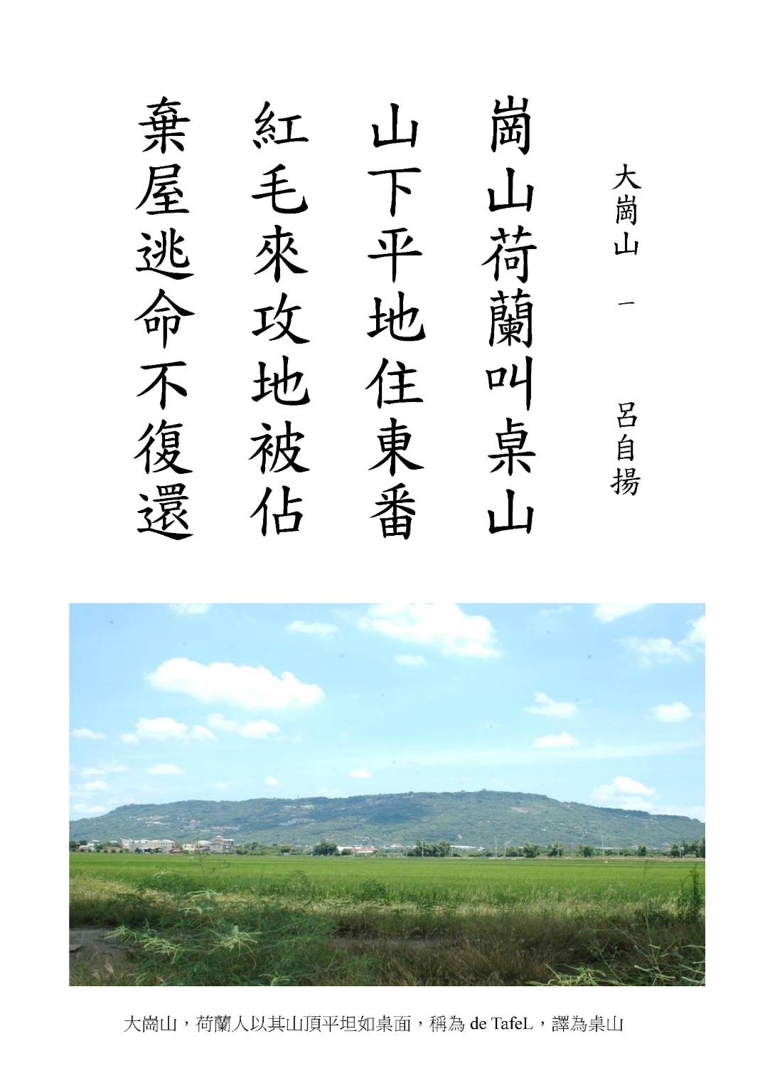 讀呂老師的《詩寫台灣》,讓我暸解許多人文歷史,例如我小時候看歌仔戲演過的<鴨母王朱一貴>,呂老師詩寫:「一貴養鴨羅漢門,反清豎旗大崗山,義軍佔城戴王冠,內亂被平五十天。」