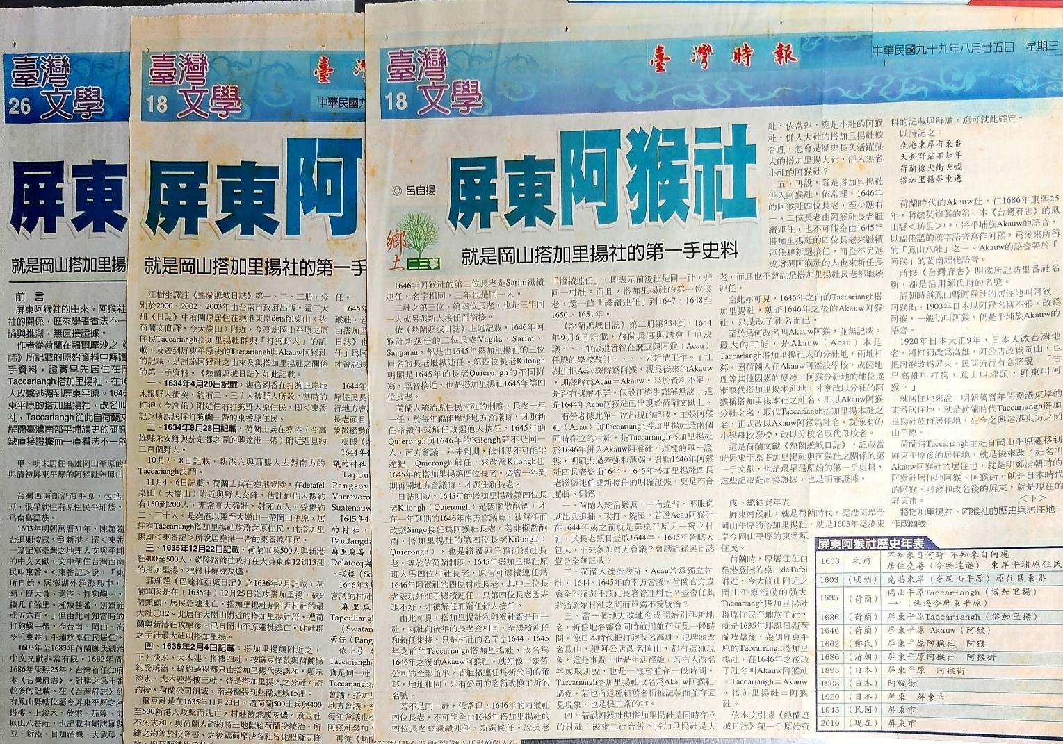 十幾年來,筆者根據荷蘭《巴達維亞日記》《熱蘭遮城日誌》《荷蘭時代的福爾摩沙》第一手史料,先撰〈屏東阿猴社就是岡山搭加里揚的第一手史料〉,刊登於2010年8月23-25日《台灣時報》副刊,和2011年6月《雄工學報》第10輯。