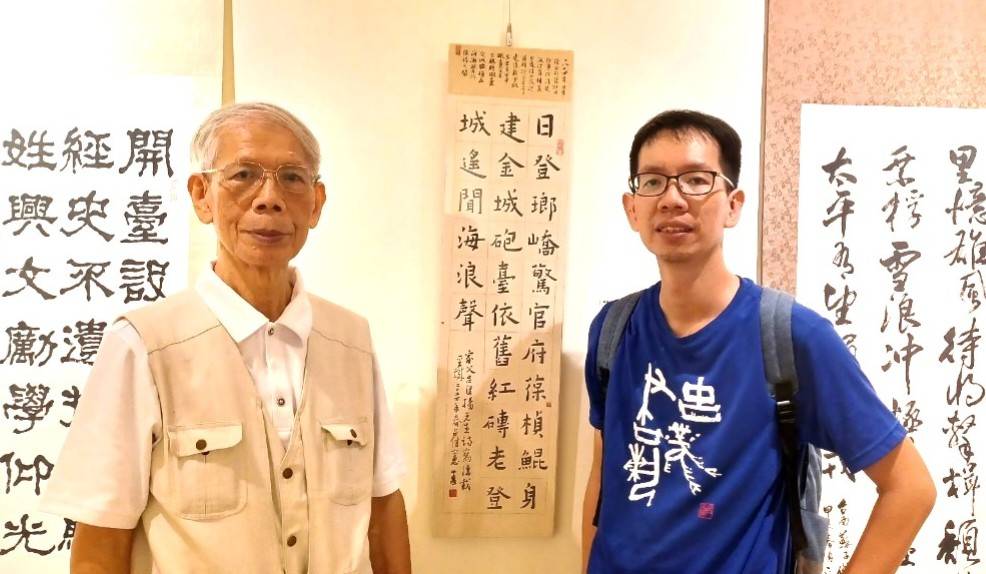 這是《詩寫台灣》的美麗島台灣詩,第二次參加慶祝「台南400」,是非常難得的文學情緣。我特於10月20日上午前往參加開幕盛會,並與翁資雄校長一起和〈安平古堡〉詩的精彩書法,合照作紀念。