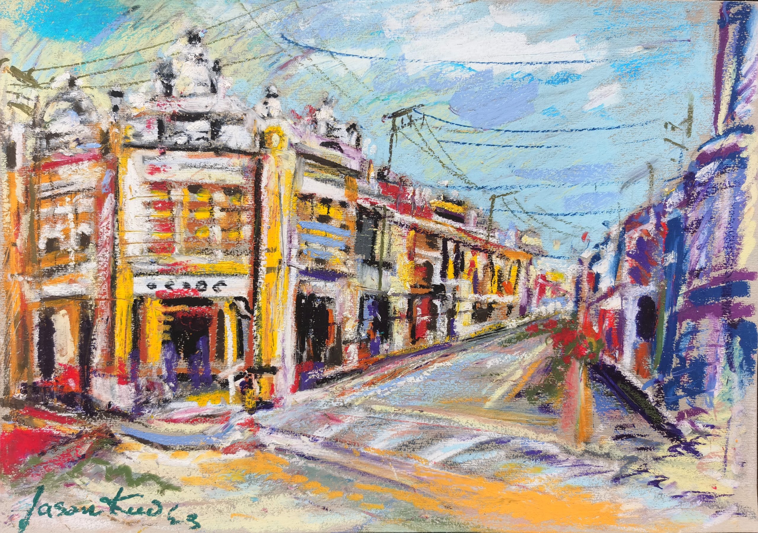這裡頭,增加了城鎮、街道、建築物,尤其是本土知名的古蹟、老街、老屋、宅院……雖然仍不離原先的「印象派」、「野獸派」、「表現派」,也就是「火山主義」的表現範疇。