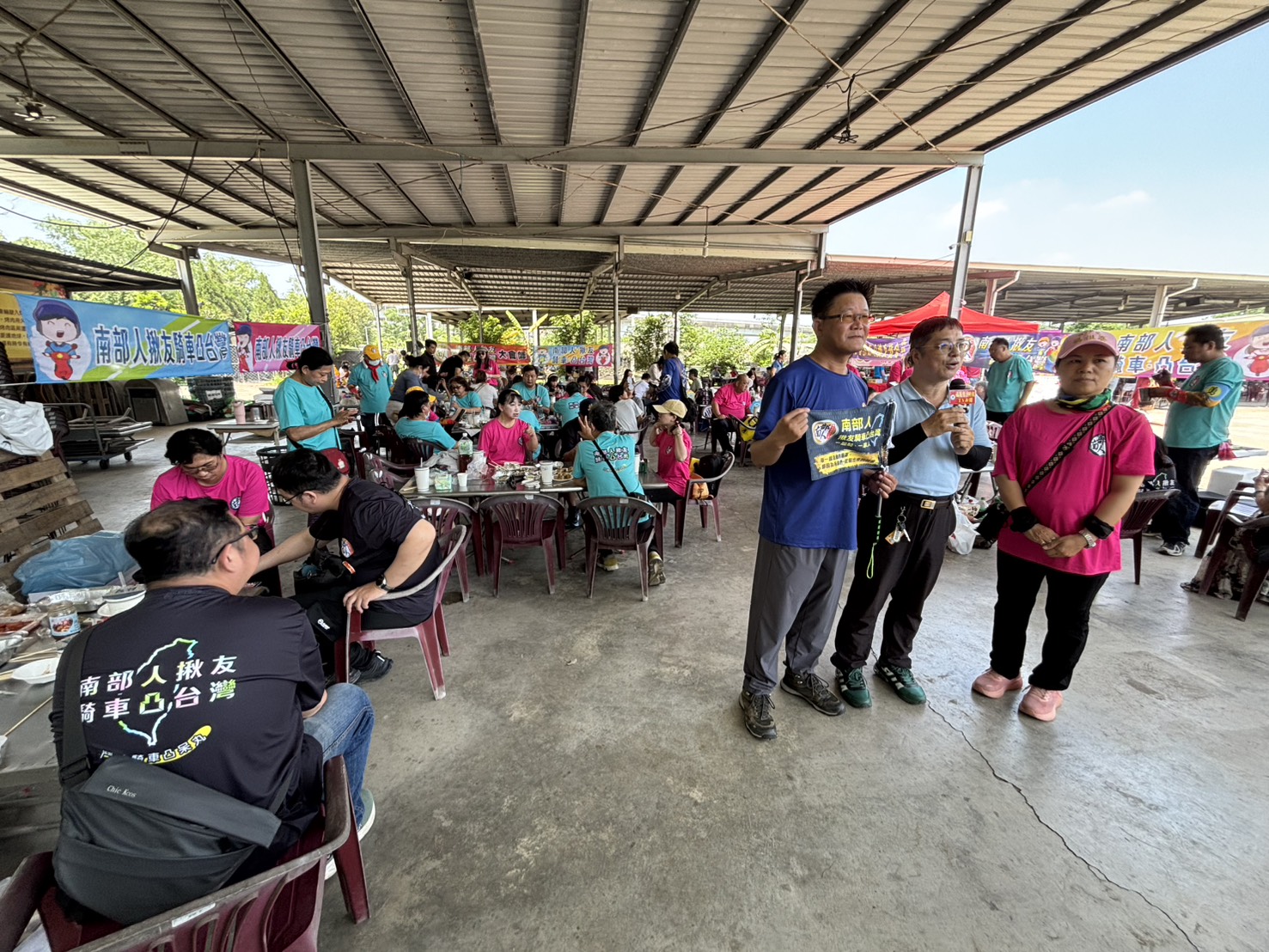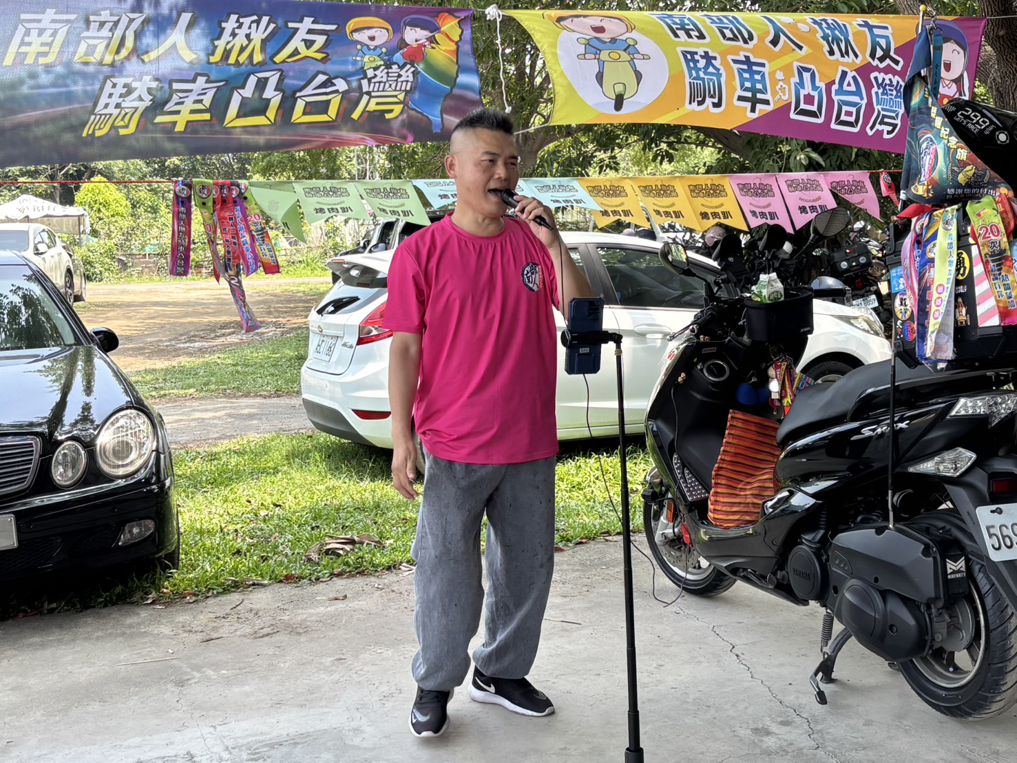 今天,「南部人揪友騎車凸台灣」車友們,在安安姊召集下,進60人在橋頭優大利教育農場齊聚,烤肉、歡唱,其中有不少新加入的隊員,也有只參與過一次騎機車出遊的大姊,但是,在「南部人揪友騎車凸台灣」車友間,都是如此的融洽,沒有讓人感到拘束不自在的氛圍,或許,這正是南部人骨子裡「阿煞力」的熱情,融化了初認識的尷尬與陌生吧!