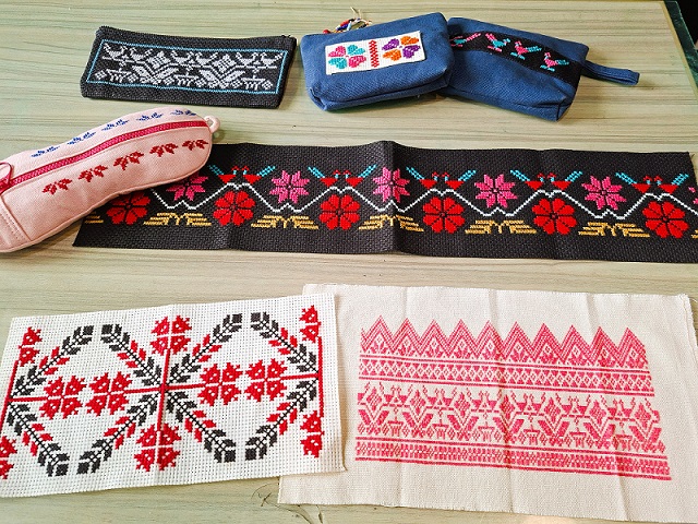 陳怡君說繡法與技術靠的是熟練,紋飾的脈絡與部落的故事才是精髓,她慢慢摸索、勤練精進外,教學時更不忘分享這些紋飾背後的意涵,而幾年下來,透過吉貝耍部落學堂的計畫與活動,部落的族人已經完成許多繡片、飾條,也將十字繡紋運用於門牌,甚至她還鼓勵族人在傳統的元素下創新發想,希望能讓西拉雅族的十字繡走向文創。而不僅十字繡,陳怡君也利用夏令營課程時,教導部落學童做串珠手環,根據部落口傳,過去婦女生產完會以苧麻繩來綁嬰兒的臍帶,等臍帶脫落後,母親會保留這條苧麻繩再與其他的苧麻混編成細繩,串玻璃珠與薏苡珠做成手環,戴在孩子手上,象徵媽媽對對孩子的守護。藉由學習捻繩串珠,不僅讓學童能從較簡易的工藝入門,也延續西拉雅族的傳統文化。