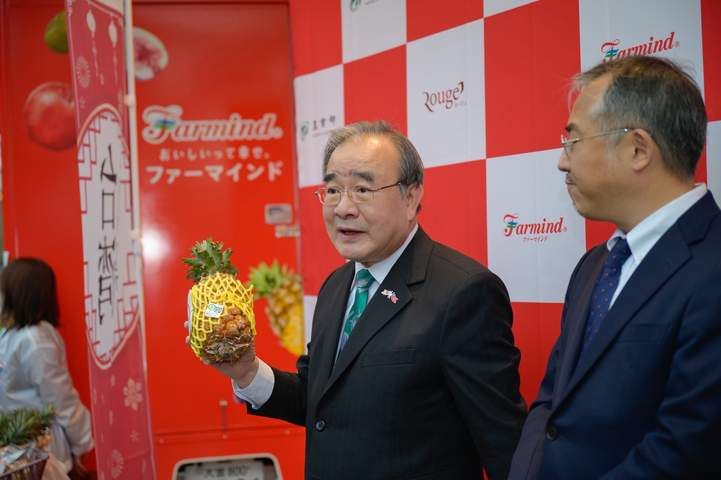 小林社長表示,過去 5 年間,臺灣鳳梨在日本進口鳳梨的市佔率已從約 1% 大幅成長至 9.5%,這代表臺灣鳳梨在臺灣獨特的氣候環境下成長,擁有濃郁甜味與豐富香氣已深受日本消費者喜愛,並融入了日本家庭的生活中,並透過Farmind株式會社從產地到賣場的全程低溫物流(冷鏈)管理,確保其維持高品質與新鮮度。金鑽鳳梨與經典食材跨界合作,餐車創意行銷搶佔日本消費者味蕾本次活動的一大亮點是現場展售由 Farmind株式會社精選的「臺灣金鑽鳳梨」,除了鮮果外,更針對日本消費習慣推出便利的「截切鳳梨即食杯」,主打連鳳梨心都能食用的細緻口感。