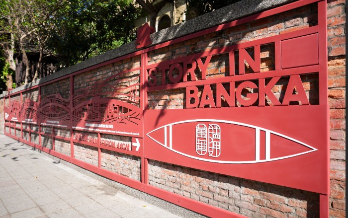 來到老松國小康定路側「萬華故事牆」,以萬華產業故事為主軸,結合運用現代設計手法及材質轉化,將萬華從清代港口、市集發展到近代城市的產業變遷歷史巧妙編織於牆面意象中,整體視覺串聯河岸、鐵路及市集等關鍵元素,透過形塑一條可閱讀的街區敘事軸線,使原本僅作通行之街角空間,搖身一變成為引導觀光客閱讀理解街區故事的「城市藝廊」,提升步行體驗的層次感。