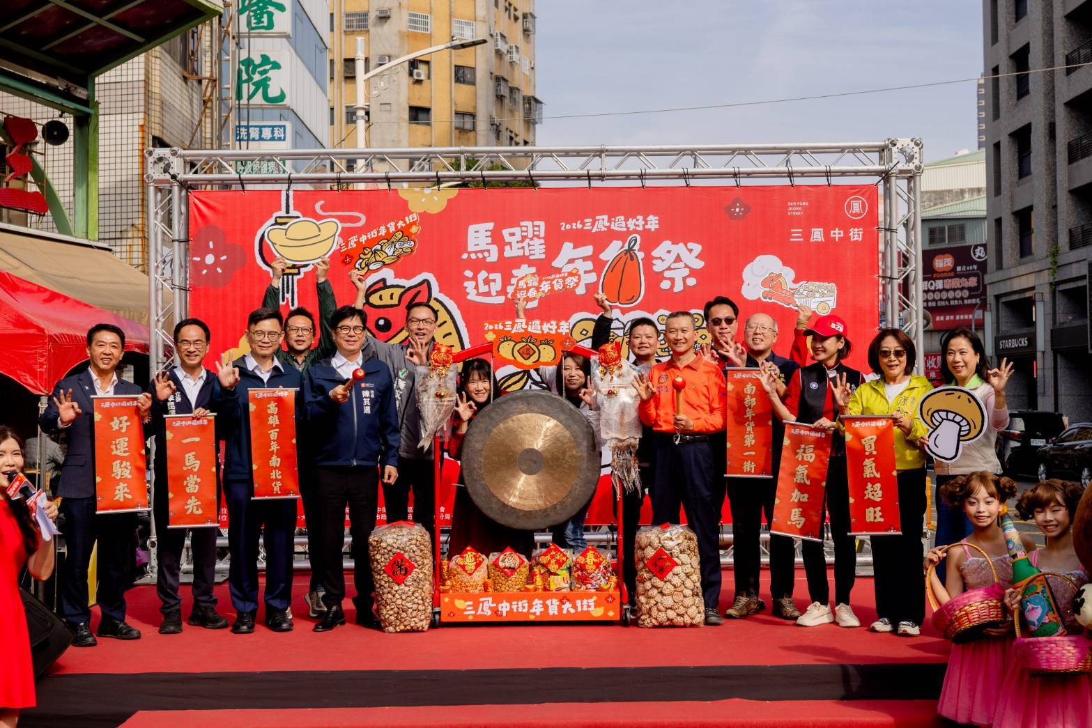 高雄市長陳其邁表示,對南部人來講,新年前夕就要抓緊時間來到三鳳中街辦年貨!擁有逾60年的悠久歷史,坊間稱「北迪化、南中街」,各式南北乾貨、中藥補品、山海產、果乾零嘴等年貨好物應有盡有, 並以服務好、品質好、信用好,價錢最公道的「三好一公道」精神,展現高雄最濃厚溫暖的人情味,歡迎各位市民朋友把握時間到訪中街,用高雄的好滋味陪你開啟馬年新氣象。
