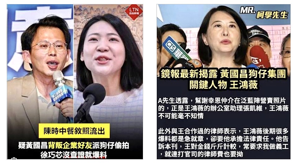 根據媒體一連串深入報導,2020年黃國昌競選立法委員落敗後,就從自鳴得意的「揭弊立委」,一路登上「黨、狗、媒體一條龍」的神壇。他假借「台灣公益揭弊暨吹哨者保護協會」名義,僱用中央社記者謝幸恩(筆名蕭依依)指揮調度狗仔隊,鎖定、跟監、偷拍政敵,並與《菱傳媒》、《民報》及其他媒體合作製造消息、操弄輿論。
