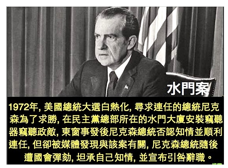 這個台灣臭不可聞的政壇「狗仔事件」集體作惡,堪比50幾前年發生在美國政壇的「水門事件」(Watergate Scandal)。而且,其污穢、失德有過之而無不及。