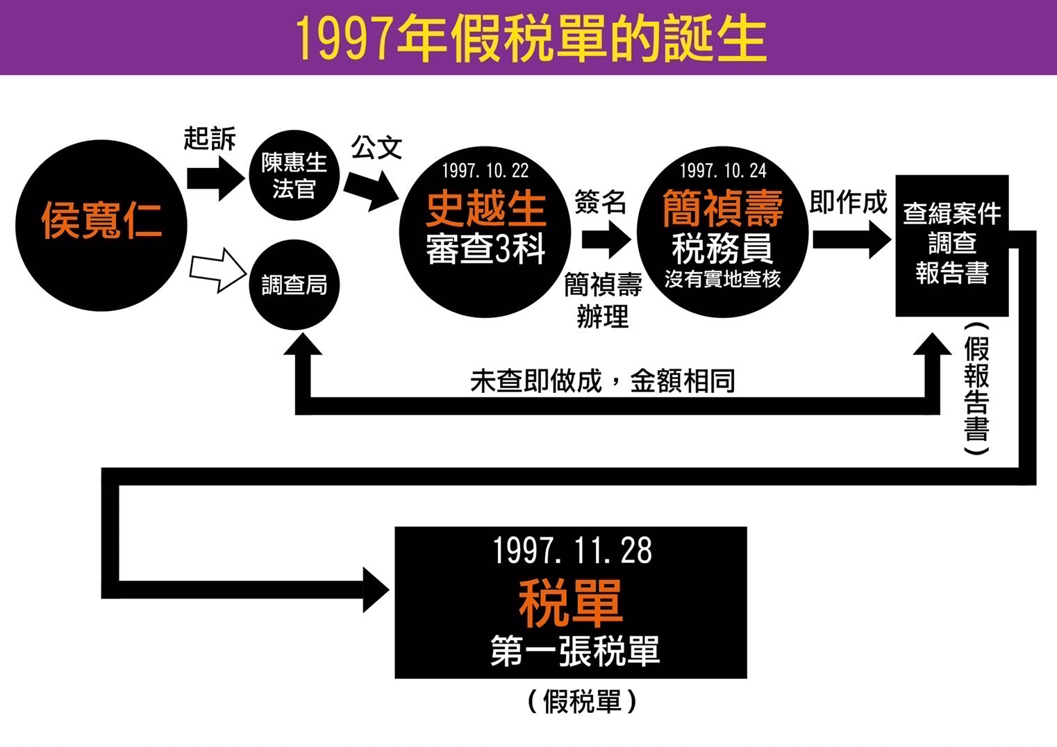 1.「人」的要件:誰做的稅單?正常的稅單,應是各該基層稅捐稽徵處,依據稅務員實際為事實調查做成的;而太極門案的這6年稅單,卻是史越生、簡禎壽等「中間官員」做的「不正常稅單」。