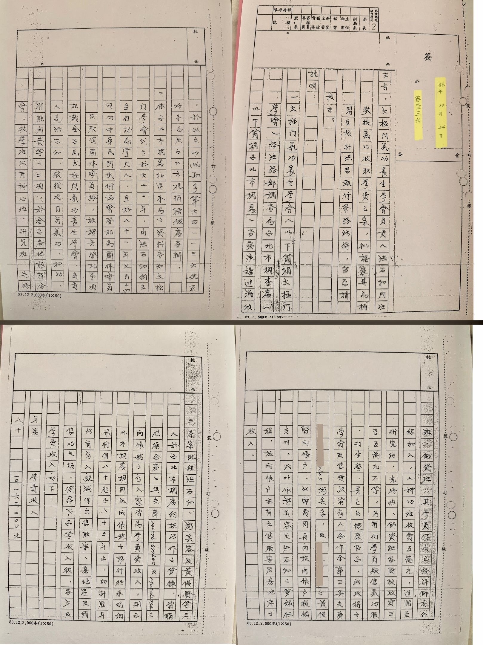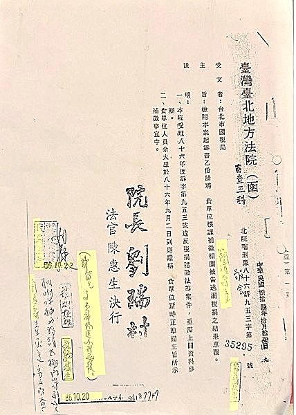 由太極門稅案的開始,是法官陳惠生,民國86年10月17日所發文,在86年10月20日文輾轉到台北市國稅局審查三科,在86年10月21日,史越生簽請簡禎壽函覆,並簽下:「請簡兄多費神儘速辦理函復。」,敬會 簡禎壽先生。此函於86年10月22日科長代為決行。