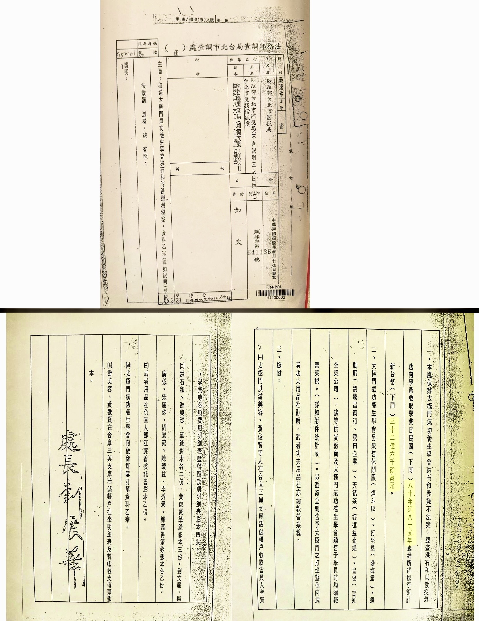 史簡二人,沒有為任何事實調查,純粹抄襲,其所抄的是臺北市調處的資料,曾幾何時,臺灣的稅捐單位「不查稅」;改為是由 #市調處,下達「稅務金額」的「#業外指揮」、「#指示」。#法務部調查局台北市調查處 (八十六年(86)肆字第641136號函)所給的年度及金額,即從80年度至85年度,合計32億6千餘萬元。
