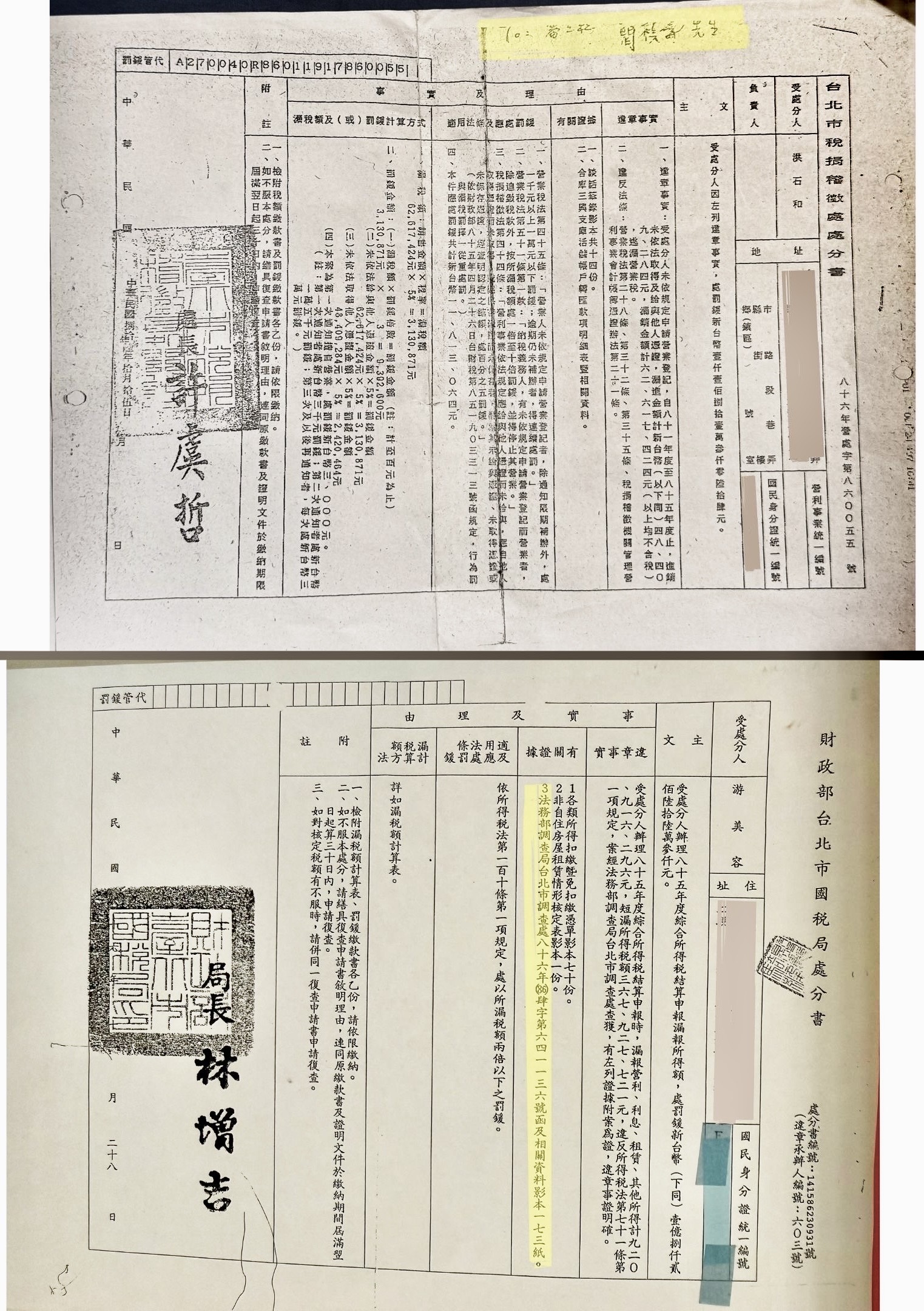 此外,臺北市稅捐處的處分書,還傳真給「簡禎壽」,足見 稅務單位,掌控者竟是審查三科的 #簡禎壽。