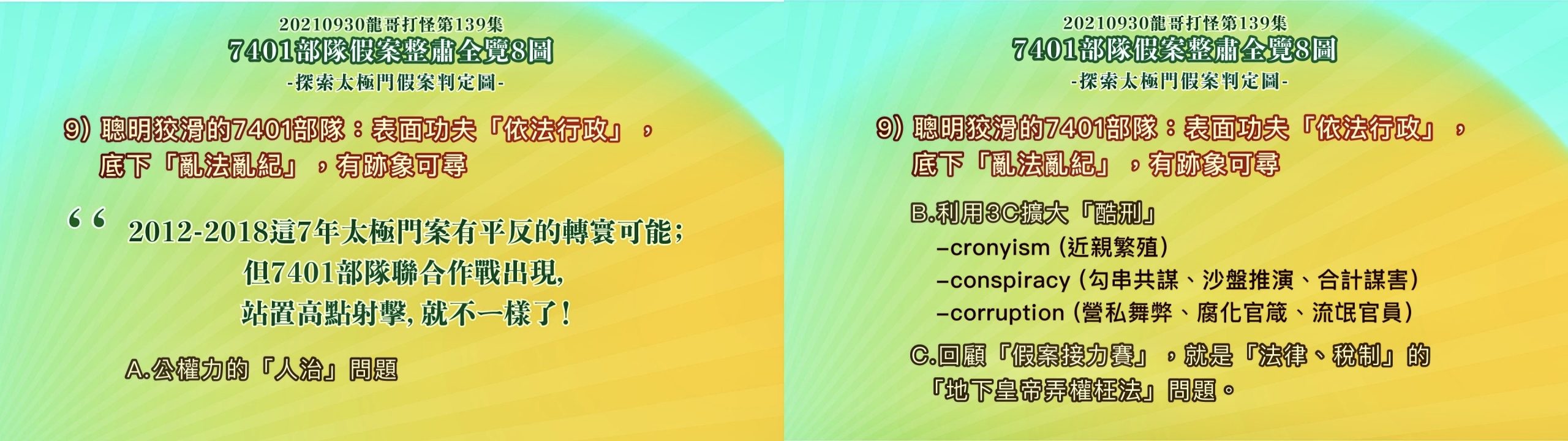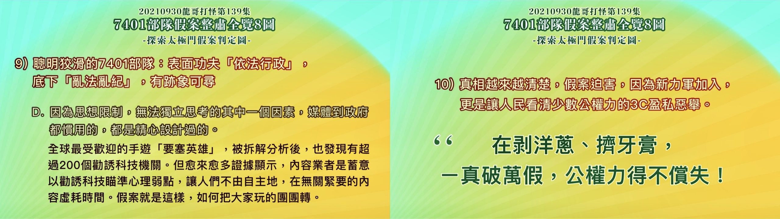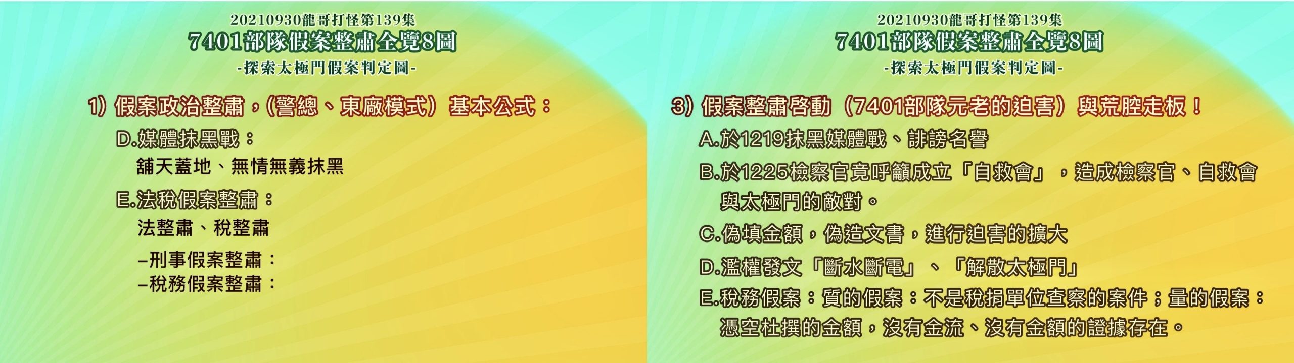 (請參考 龍哥打怪139集:7401部隊假案整肅全覽8圖-探索太極門假案判定圖)