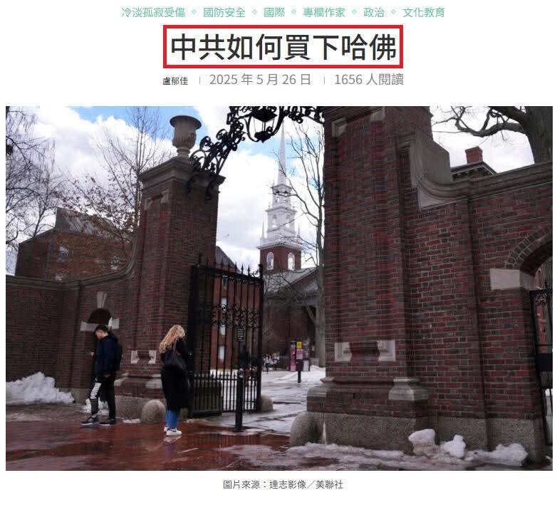 這篇文章出自台派媒體平台思想坦克,題目是「中共如何買下哈佛」。這篇文章對哈佛的指控嚴厲,但不盡公平,甚至有嚴重的偏頗。