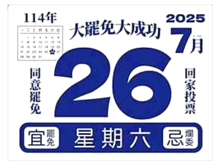 近年來,「大罷免、大成功」舉國公民意識的醒悟,證明了罷免已不是不同政黨對立這麼簡單了。徐重仁登高一呼:「每一位有投票權的人,在726大家站出來!」正是展現善良台灣人厭惡邪惡政客的道德勇氣!