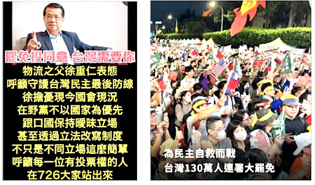 總之「大罷免」就是「善良」對抗「邪惡」的聖戰。「中國」國民黨引進「中國」共產黨,企圖奴化台灣,不願接受的善良台灣人,一致站出來消滅「邪惡」吧!
