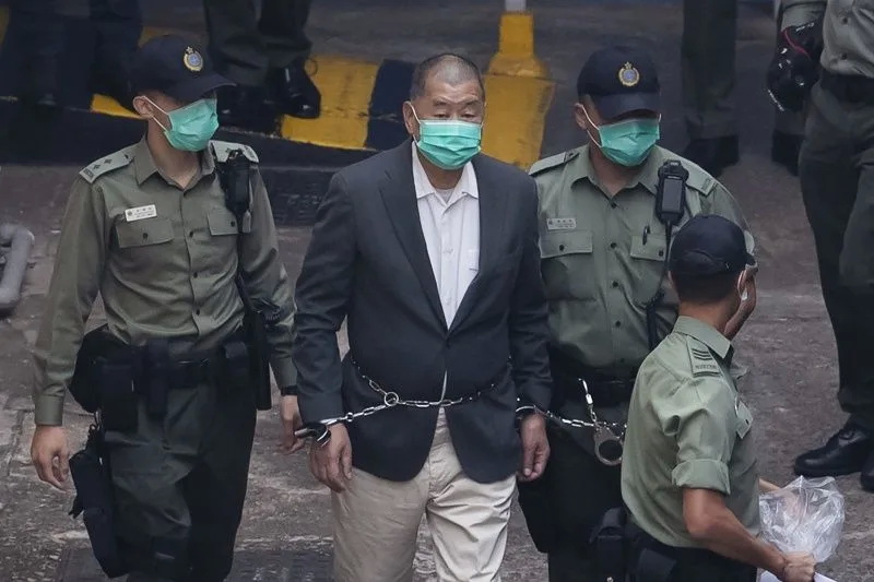 2020年12月12日香港壹傳媒創辦人黎智英,被港府指控涉嫌觸犯串謀欺詐罪而關押,再被加控「勾結外國或者境外勢力危害國家安全」罪,在西九龍裁判法院開庭黎智英被押往法院時,除了被上手銬外,腰間還被纏上鐵鍊。這個極端恐怖的畫面,在台灣大罷免如火如荼抗暴運動中是值得台灣人警惕的意象。