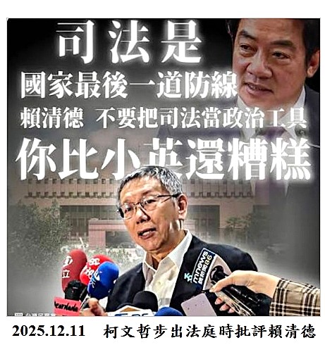 3. 果真台灣的司法是民進黨的,是賴清德操控的。我強烈質疑,賴清德的政治黑手介入司法,追殺一身清白的政敵。「叫賴清德出來講」!