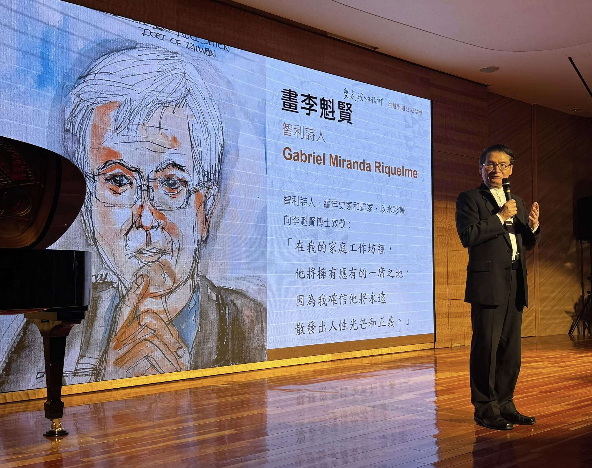 然而他詩的花粉,早已遠飛浸入地球的泥土, 生根綻放; 他詩的音符,也己傳譯各國的語言, 飛舞播放。他的詩,譯作之多,冠冕全台, 以構築了 李魁賢的日不落的詩國 。隨地球 而不休的 連續 自轉。斗魁文曲也永繞北辰,輝映天下的學子,李先生是「永遠袂倒的干樂」, 這句是阮鬥陣時講的話。他少年「國文」受教於黃錦鋐師(出身軍統,九州大學博士,同情本土台獨,其人生待我書寫), 也是我翁某師大的恩師,,魁賢兄也通古典漢詩文, 我不會 用幾句 華語白話詩歌詠他的 一生, 我們交往的語言是台語 ,姑以文白七绝詠頌。