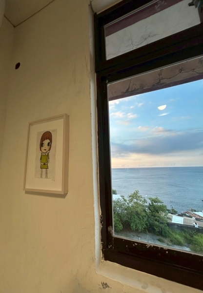 同意修舊如舊,保留壁癌和斑駁天花板,4層樓的展示作品、掉漆內牆和窗外海天景色,從哪個角度看都是風景!