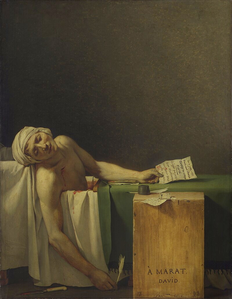 1793年創作《馬拉之死》,將馬拉描繪成為革命而獻身的「殉道者」,畫家曾在馬拉死後前往其住所,看到了當時確實存在的一些事物,例如綠色的圍毯、馬拉手握的紙張以及筆;馬拉手上的信,是柯黛兒誘騙刺死馬拉的證明。馬拉死時幾乎一無所有!