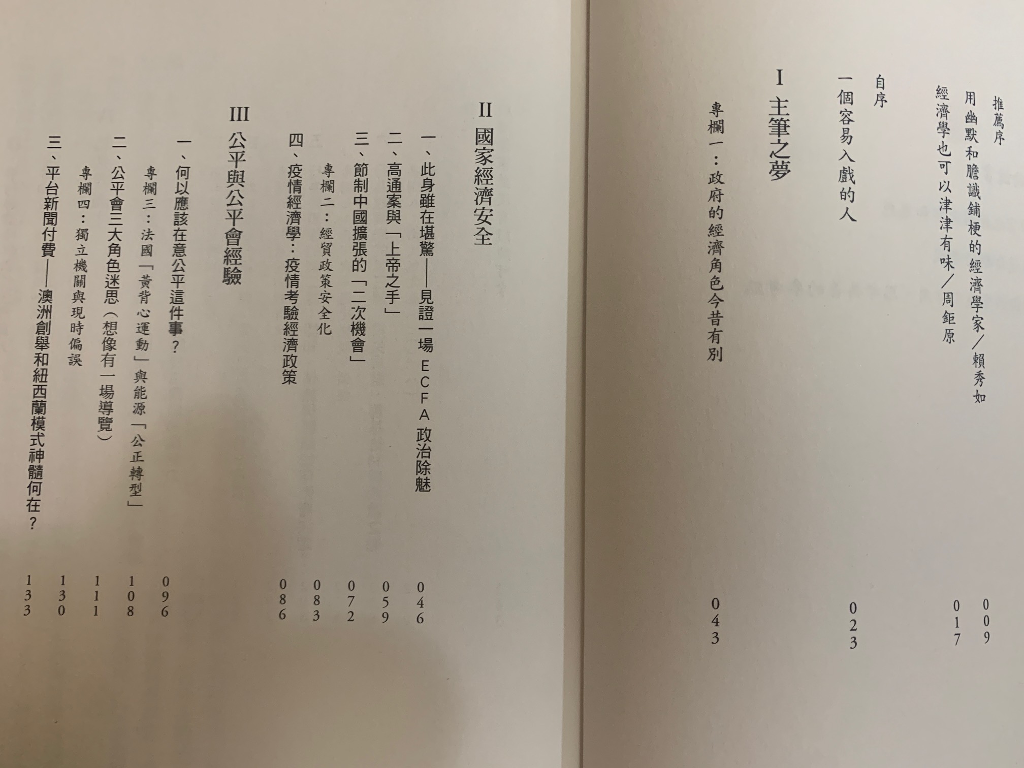 本書有一篇討論稍艱深的「好的政策未必討好」文章(頁178-182),引用法國經濟學家提洛爾的討論,如何在「好的政策」和「討好的政策」之間做出選擇,政策設計必須要有好的經濟思維,滿懷善意的政策宣稱,往往讓良法美意大打折扣。對照我們各項的紓困或普發現金政策,實值得警惕。