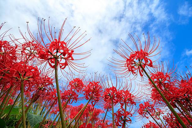 首先摘錄網路科普,學名紅花石蒜,亦稱曼珠沙華,中國花語是「優美純潔」、日本花語是「悲傷的回憶」、韓國花語是「相互思念」。花始開於七月夏日,卻在秋天結花,因春秋分交替時節民間慣稱為「彼岸」,故名彼岸花、天涯花、舍子花。傳說這是生長在三途河邊的接引之花,花香有魔力,能喚起死者生前的記憶。花開時不見葉子,有葉子時不見花,花葉兩不相見,生死相錯,自古被視為開在黃泉路的花朵。