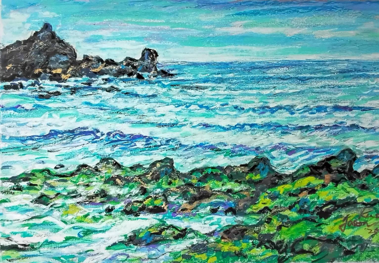 岩礁は夕陽を愛し抜き、死しても変わらぬ!