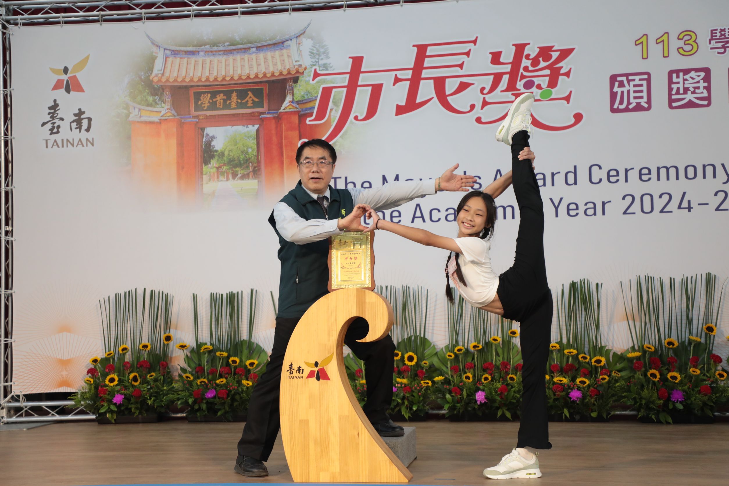 獲市長語文獎的麻豆區麻豆國小林靖恩同學,六年來始終腳踏實地、全力以赴。雖自認不是最出色的那一位,卻總能在語文學習中發光發熱。因熱愛語言,她積極參加閩南語朗讀比賽與英語讀者劇場,嘗試多元表現;面對挑戰,不怕失敗、不畏挫折,堅持以恆心克服困難,逐步找出屬於自己的亮點。靖恩說,她會將這份榮耀化為前進的動力,並期許自己繼續在學習旅程中發光發熱。