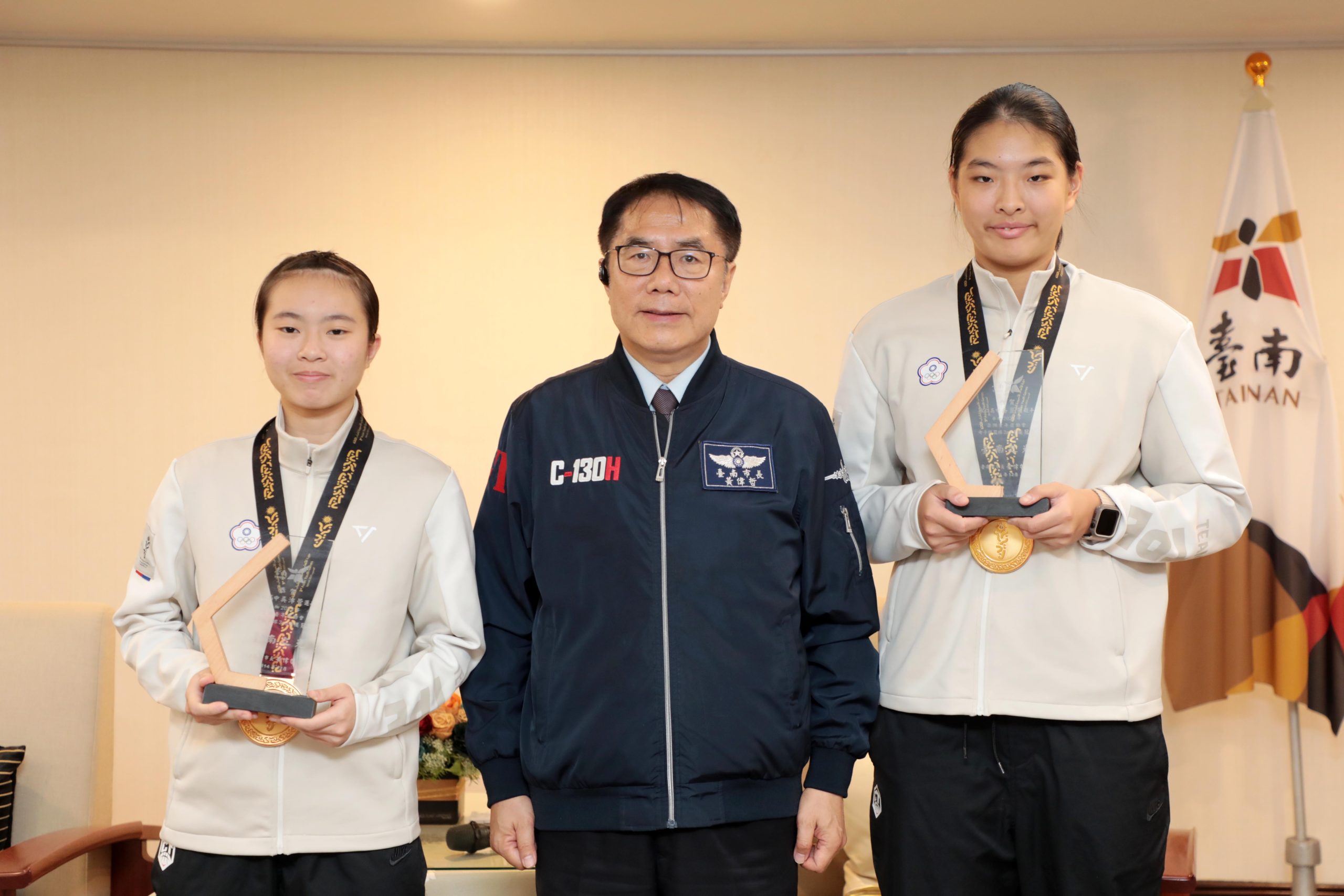 黃偉哲表示,台南選手在國際舞台展現令人驕傲的韌性與實力,不僅為國家爭取榮耀,也讓世界看見台南青年的潛力與競爭力。他特別感謝學校的全力配合、教練的專業訓練,以及家長長期的陪伴支持,讓4位選手在面對遙遠旅程與截然不同的氣候、飲食等挑戰時,依然能在亞青運奪下金牌與銅牌,展現強大氣勢與堅定意志,實屬難能可貴。