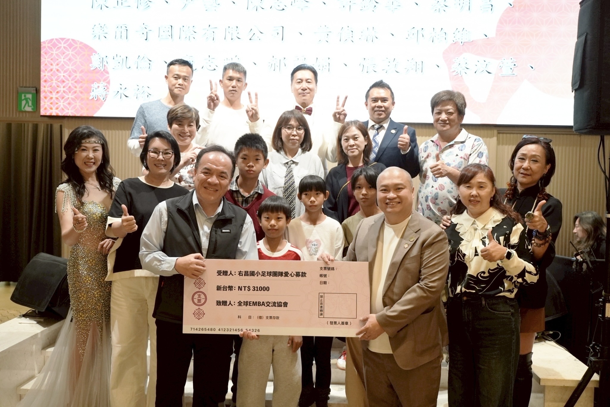 活動以極具藝術張力的開場表演揭開序幕,專業舞者手持國際時尚香氛品牌JOMODEL「香氛智顏所」系列香水,透過舞蹈演繹「春暖花開、湛港之風」,巧妙傳遞出專屬於高雄的海洋氣息,為整場春宴注入優雅與創新兼具的感官體驗。活動中特別安排公益捐贈儀式,感謝學長姊熱心支持右昌國小足球隊,並邀請校長及學生代表上台接受捐贈,場面溫馨感人,充分展現協會回饋社會的企業責任。