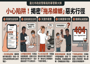 臺北市政府警察局刑事警察大隊於114年底接獲情資,以蔡姓主嫌為首之拖吊業者及司機,頻繁活動於雙北市、桃園等地區,利用民眾車輛故障急迫之際,以實施詐欺、恐嚇取財方式,迫使民眾繳交高額拖吊費用。案經報請臺灣臺北地方檢察署檢察官指揮偵辦,專案小組於3月17日發動同步掃蕩查緝行動,一舉拘提蔡嫌及旗下成員共計6名犯嫌,徹底打擊該犯罪集團。