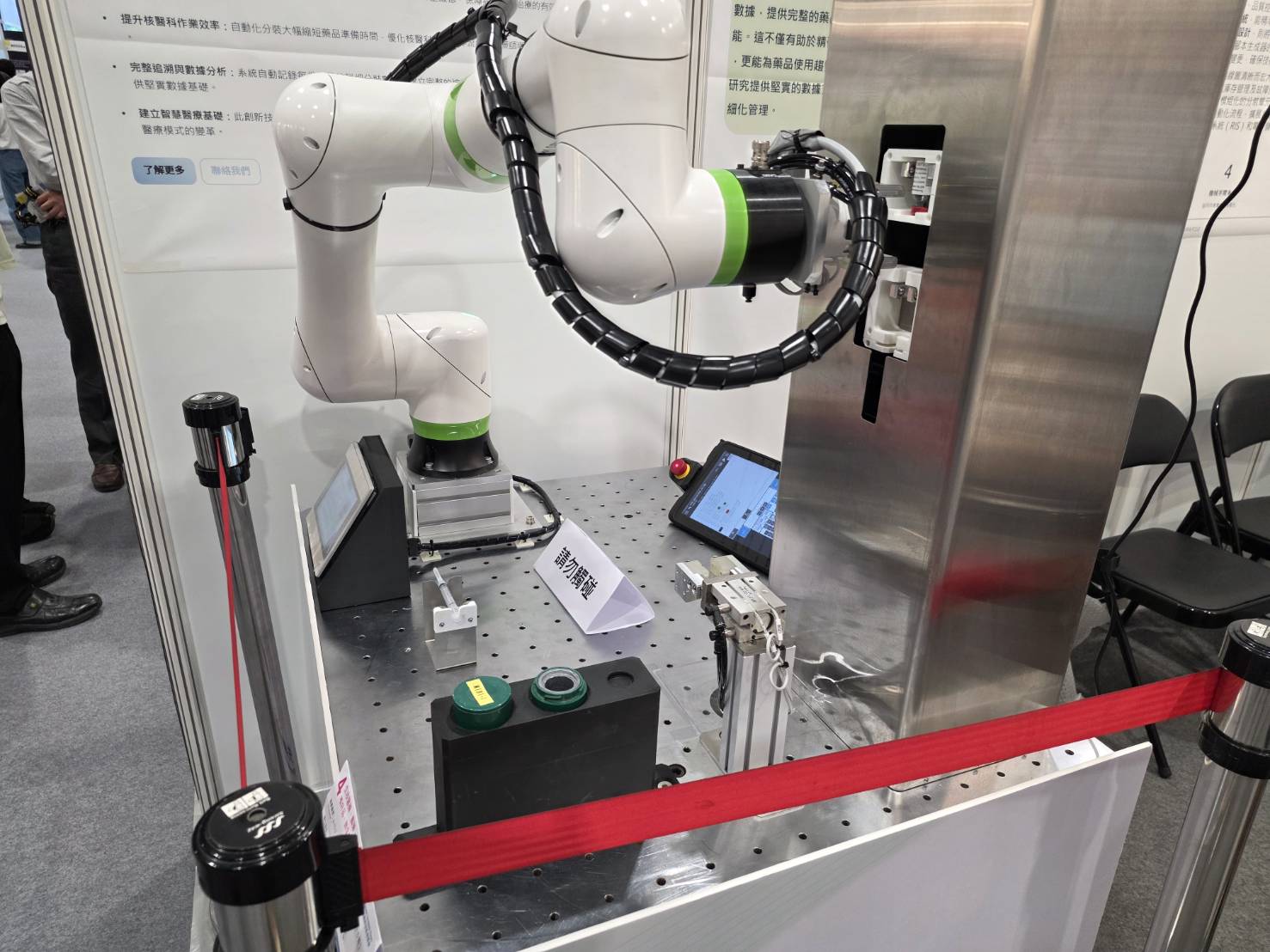 本項創新技術由核子醫學部與醫學工程室共同研發,結合人工智慧(AI)控制技術與六軸機器手臂,可在無人操作環境下自動完成放射性藥品的抽取、分裝、貼標及封裝流程,開創放射藥品製備零暴露的新里程碑。創新系統具備高精度分裝與自動化輻射防護功能,能大幅降低人員輻射暴露風險,並提升核醫藥品製備效率與安全性。此研發成果展現臺北榮總在智慧核醫與醫療自動化領域的創新能量,為臨床放射藥品管理樹立全新標竿。