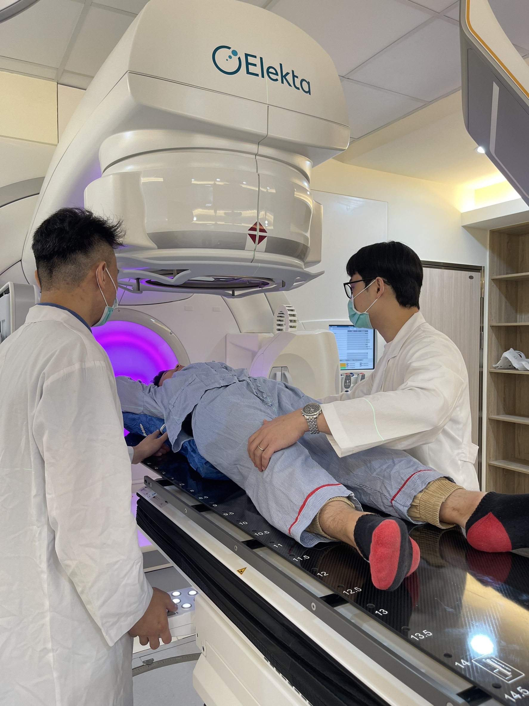 台北榮總所引進之高劑量率影像導引醫用直線加速器,搭載熱影像導引追蹤修正系統,是目前唯一能在治療過程中,即時監測腫瘤與體表變化,並自動修正定位的設備。此先進系統除提升放療精準度外,更兼顧病人的隱私與尊嚴。這也是北榮第六部直線加速器。