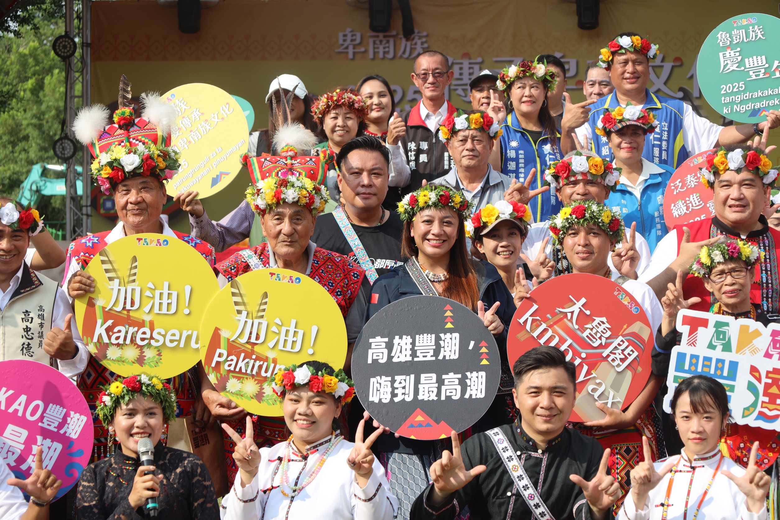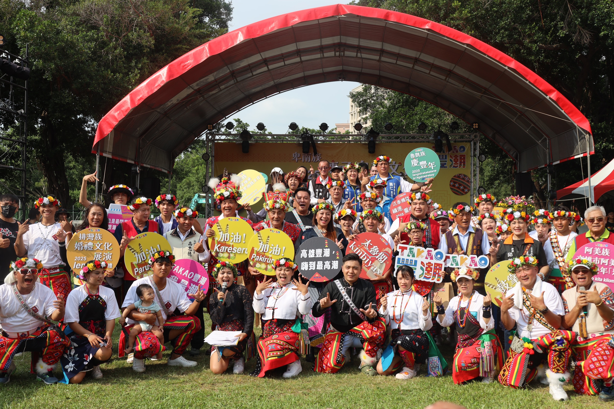 熾熱艷陽照耀卑南風采,在高雄生活超過一甲子的卑南族人,9月20日老中青幼各年齡層齊聚鳳山大東濕地公園,部落耆老圍坐場中央,青壯年和小孩圍著耆老賣力歌舞,傳承卑南文化,令人非常感動。高雄市普優瑪同鄉會、高雄市普優瑪文化發展協會和高雄市政府原住民事務委員會,在鳳山大東濕地公園舉辦2025 TAKAO豐潮系列活動卑南族文化節,是今年第一次籌辦的主題文化祭儀,本市卑南族人口達1004位。有別於以往的祭儀展演,卑南族人於民國79年成立高雄市普優瑪同鄉會,在高雄深耕35年這次以離開台東故鄉來到高雄為故事基底,並將卑南族群的精神與文化呈現在眾人面前。