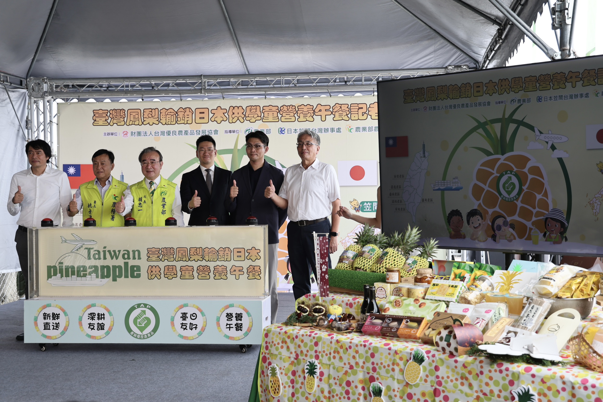農業部次長胡忠一指出,為與日本進行食農教育及文化交流,農業部自108年起與日本茨城縣笠間市合作,提供台灣產的優質香蕉、鳳梨、芒果及文旦等水果,作為中小學校學童營養午餐。今年已邁入第七年,將由台灣鳳梨率先啟航,預計供應茨城縣內水戶市、石岡市、大子町市、笠間市、守谷市等5市町92所中小學校,採購總量近3公噸的台灣鳳梨,供超過3萬3千名學童享用。
