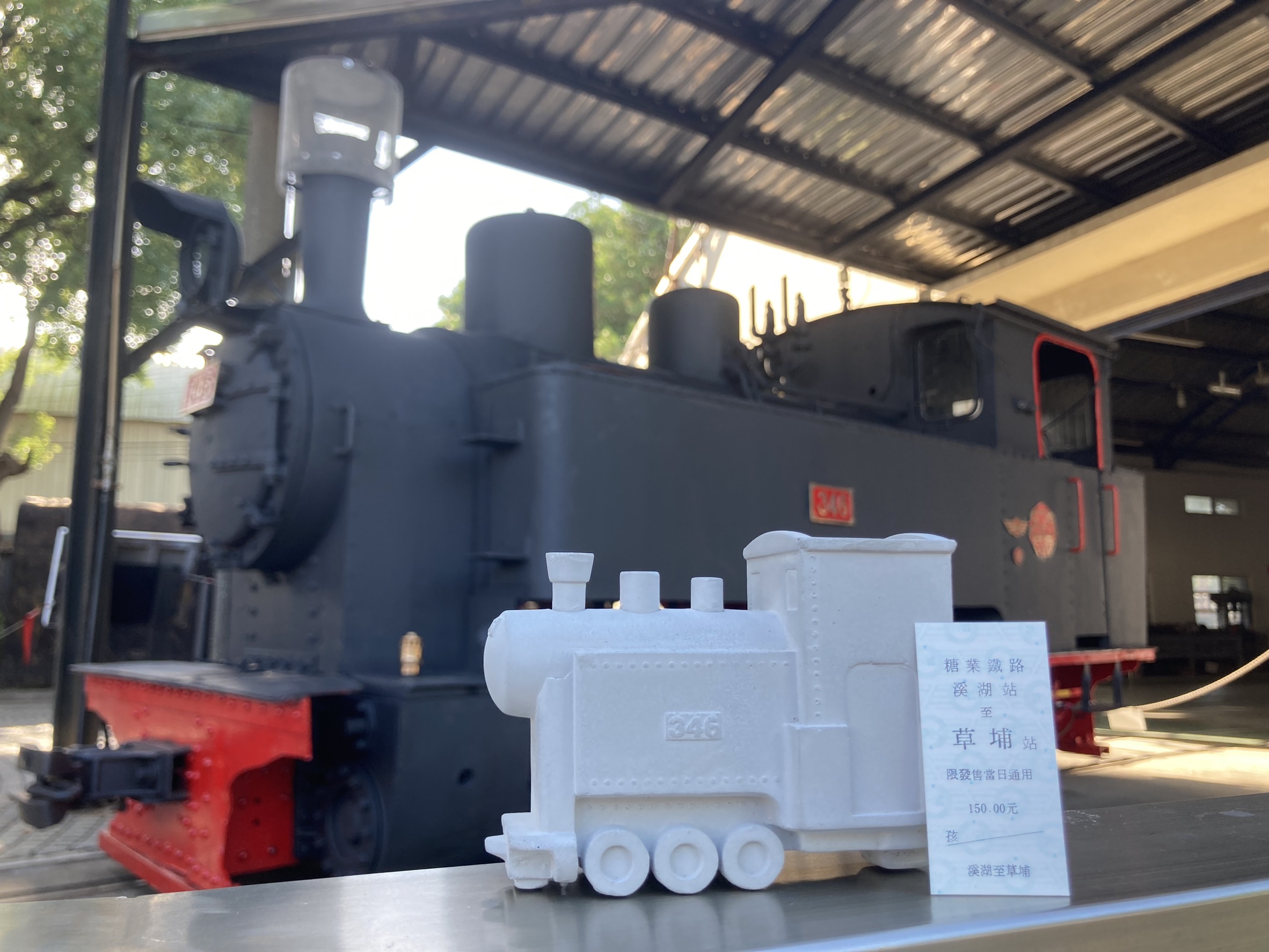 台糖進一步說明,346蒸汽五分車復駛紀念車票是由日本鐵道迷小宮和貴先生復刻早時糖鐵營業線車票形式,以鉛字活版印刷技術經過4次手工印刷程序而成,在臺灣已不復見,極具收藏價值。除了「346重啟糖鐵深度體驗」的參與者可以獲得外,10月24日、25日每班次(上午11時及下午2時)前100名單筆購入2張車票(需含1張全票)者,亦可獲贈紀念車票1張,數量有限,鐵道迷千萬不能錯過。