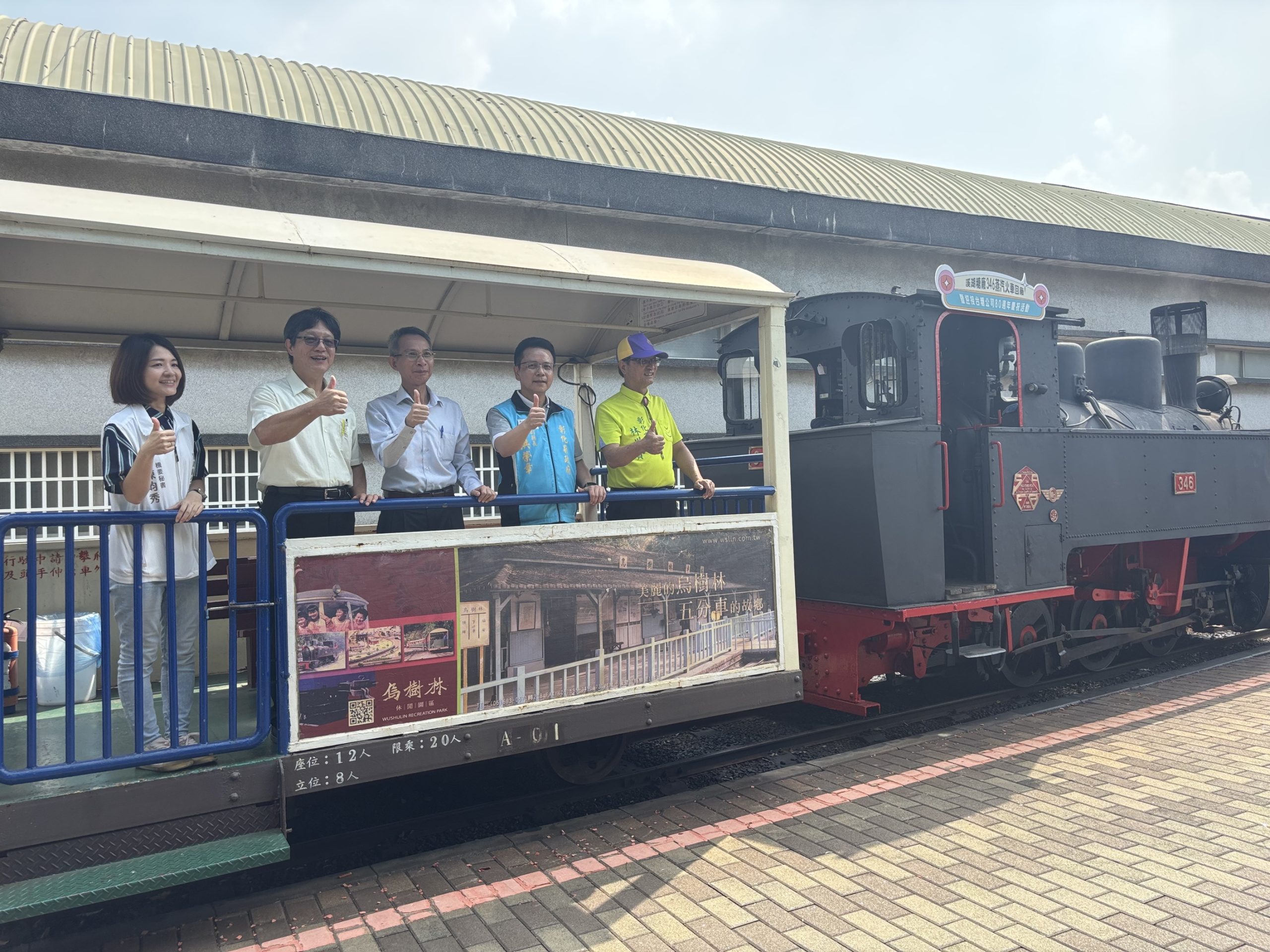 今(15)日上午台糖於溪湖糖廠舉辦「台糖80‧346再出發」活動宣傳記者會,1948年出自比利時的「346蒸汽五分車」在台糖副總經理蕭基淵的見證下,吐著白煙緩緩向前行駛,宣告「346蒸汽五分車」披著阿公級的勳章,沒有時光穿越,只有榮光延續,在幾近修復零件停產下,台糖完成不可能的任務讓346安全上軌,若不是有老技師按古圖逐步拼裝,去年7月28日停駛可能即停役。