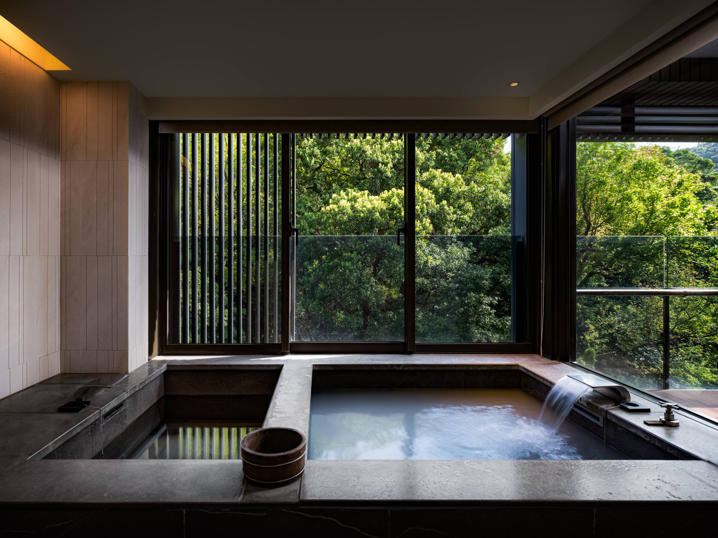 北投麗禧坐落群山之間,是遠離都市喧囂、擁抱自然的療癒之所。每間客房皆擁有15坪以上寬敞空間,並設有獨立冷熱泡湯池,泉源引自硫磺谷白磺泉,水質溫潤細緻。窗外綠意盎然,泡湯同時亦可靜賞山色,享受身心徹底放鬆的悠閒時光。