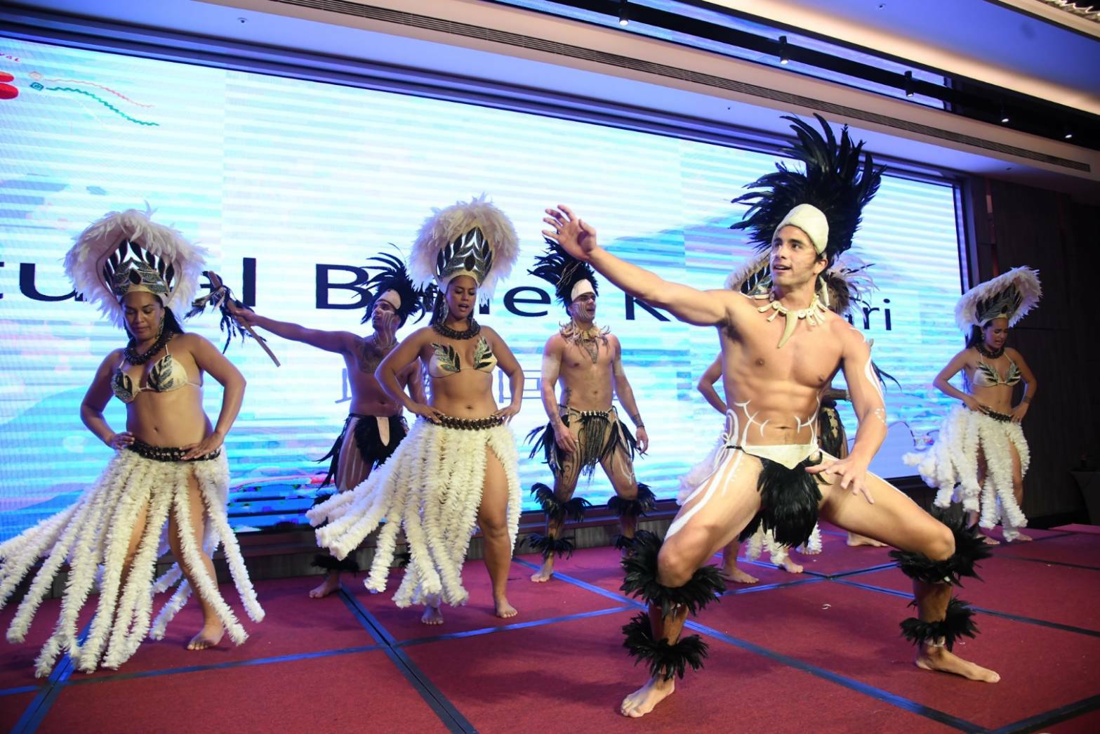 貴賓接待交流晚宴由花蓮縣政府培育的阿勒飛斯文化藝術團擔綱主軸,首先以南勢阿美的祈福儀式做為開端,為復活節島代表團進行誠摯的祈福;隨即阿勒飛斯文化藝術團帶來「Kalingko 花蓮六大族群禮讚」,用舞蹈及歌聲向來自復活節島的貴賓介紹花蓮六大原住民族族群的樂舞文化,讓現場復活節島的賓客讚嘆不已。除此之外,為了表達對於復活節島代表團的崇高敬意,徐榛蔚縣長準備了胡銀祿老師親手雕刻的「達邦(Tapang)」木頭雕像,以頭目、傳統領袖的意象致敬復活節島貴賓及傳統文化;同時,花蓮縣政府亦為所有貴賓準備本縣原住民族文化最具代表性之一的情人袋,並親自為每位披戴,象徵著彼此間的情誼常存永駐。