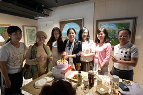 館主侯文欽與夫人呂惠華致詞祝賀,溫暖情感並分享與李盈瑩及其家人的深厚情誼,讓現場洋溢濃厚人文氣息。真善美聯誼會亦特別準備「健康100、平安100、財富100」祝福蛋糕,為李盈瑩提前慶生,悠遊畫會、向陽藝術學會、南贏清溪畫會及救國團相關團體多位理事長與會長皆到場祝賀,來賓更以國語、台語、英語及黃梅調合唱生日快樂歌,場面溫馨動人。
