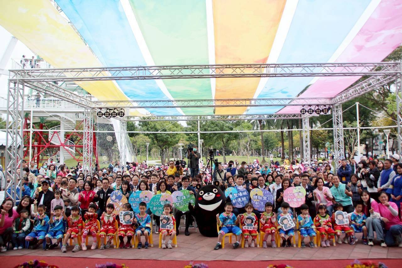 位於高雄愛河畔,全台獨一無二且榮獲2025年城市工程品質金質獎的「盤花公園」,今(27)日上午舉行盛大的開園活動,啟用典禮由高雄市長陳其邁與中央客家委員會副主任委員邱星崴共同主持。開園活動響應全球淨零趨勢,以生態嘉年華形式慶祝,規劃豐富多元的一系列綠森活體驗,熱鬧現場湧入眾多市民與客家鄉親,共同見證這座融合客家文化記憶與都市景觀的新公園誕生,活動現場不時傳來孩子們的歡笑聲,親子朋友穿梭於園區各角落,參與走讀導覽、手作體驗與盤花茶會等多元活動。