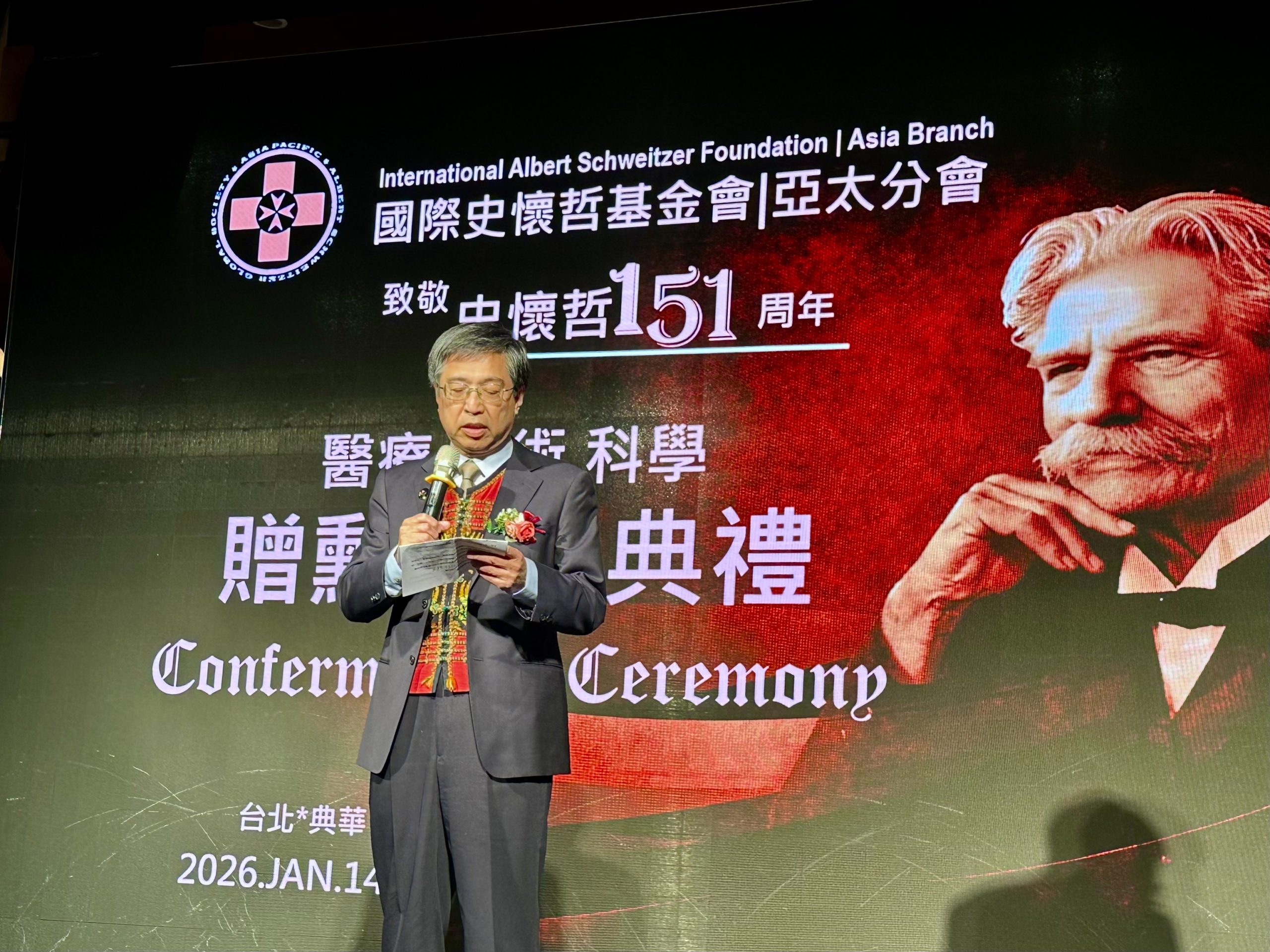 在全球地緣政治波動與氣候變遷引發生存思索的當下,一場回歸生命本源的國際盛會於 2026 年 1 月 14 日晚間在台北典華會館隆重舉行。國際史懷哲基金會(International Albert Schweitzer Foundation)亞洲分會藉由紀念醫學人道先驅史懷哲博士 151 周年誕辰,舉行年度《敬畏生命》勳章頒授儀式,旨在重新喚醒全球對於「人道、生態、倫理」三位一體的深度共鳴。